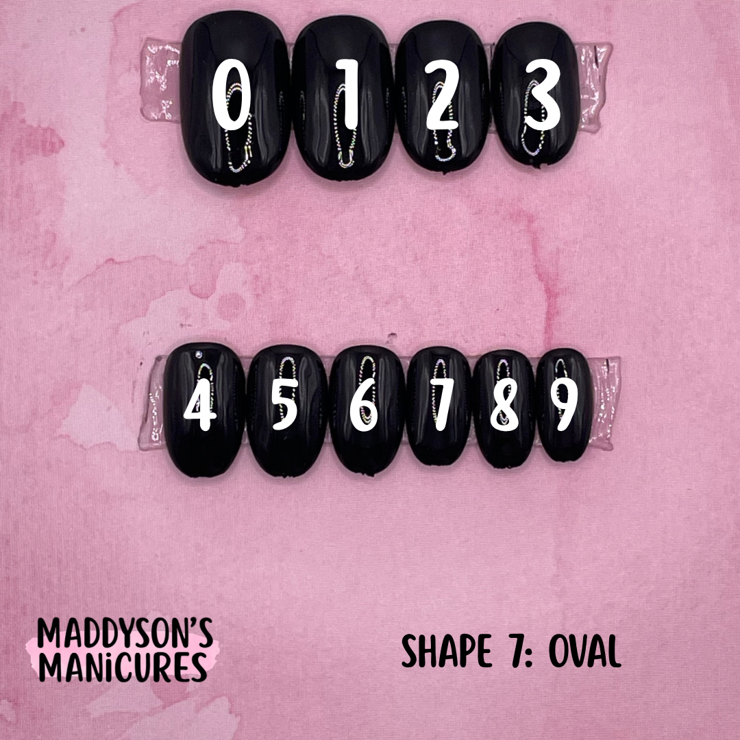 Pairs of Sizes 0-11Size 0: Width 18mm / Length 24mmSize 1: Width 17mm / Length 23mmSize 2: Width 16mm / Length 22mmSize 3: Width 15mm / Length 21.5mmSize 4: Width 14.5mm / Length 20.5mmSize 5: Width 14mm / Length 19.5mmSize 6: Width 13mm / Length 19mmSize 7: Width 12.5mm / Length 18.5mmSize 8: Width 12mm / Length 17.5mmSize 9: Width 11mm / Length 17mmSize 10: Width 10mm / Length 16.5mmSize 11: Width 9mm / Length 15mm